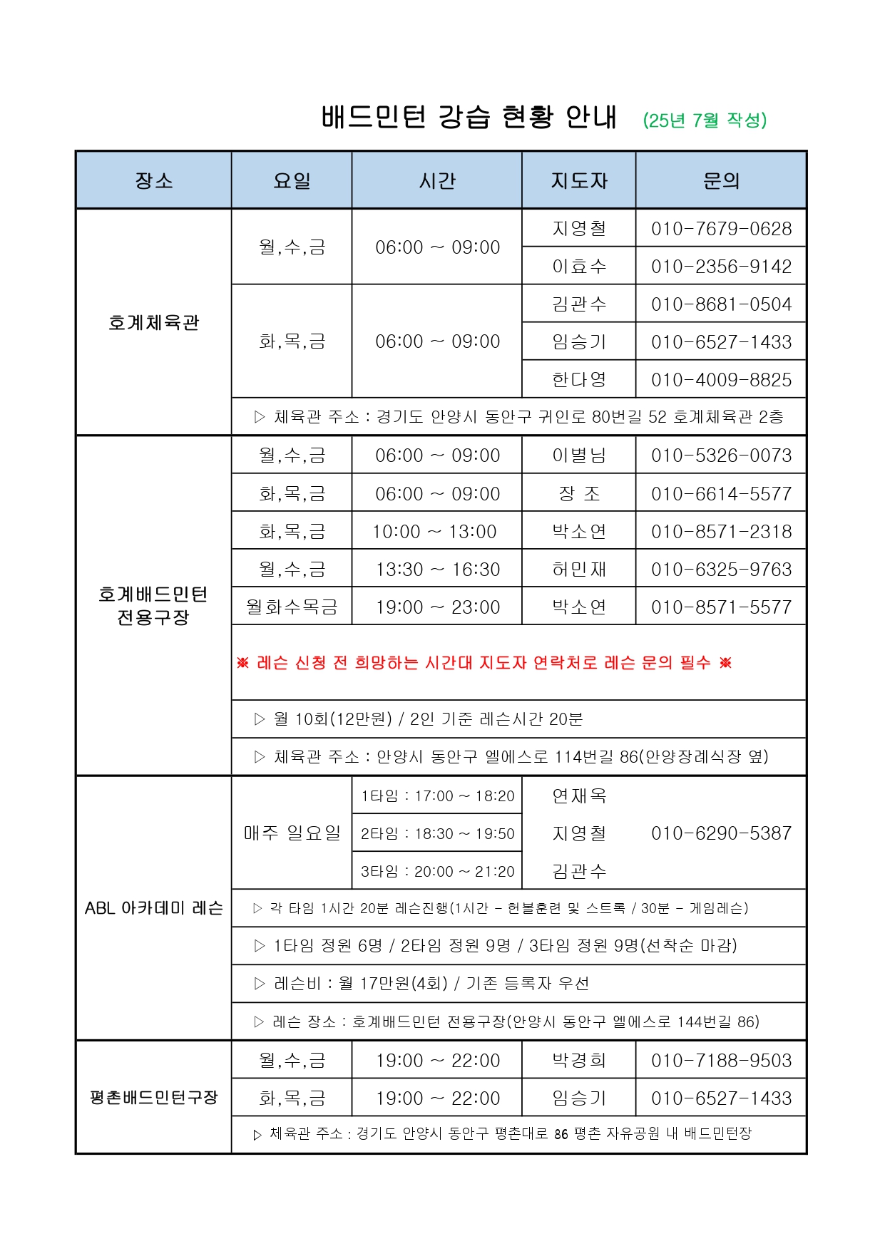 신청서 취합 후 코치님과 스케줄 상의하여 개별연락드립니다.